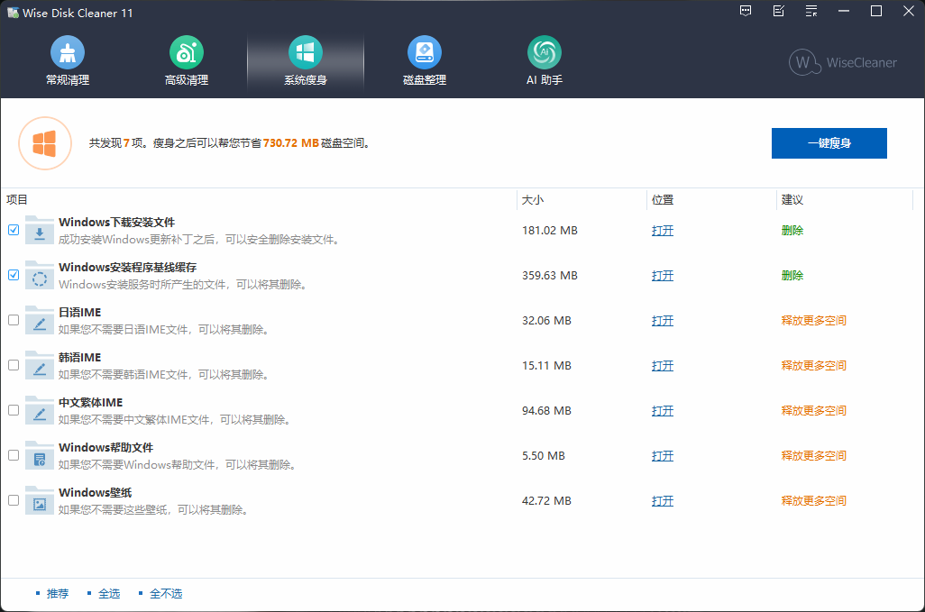 超级好用的C盘清理工具 WDCFree V11.1.2,清理能力远超360,本人首次使用就清理掉20GB垃圾! 栏目:软件区 作者:nantuziyuan123 时间:2025-12-03 20:39:38   **简介:** 如果你的电脑还用360去清理C盘的话,可以去卸载掉了,360不但清理不干净,反而给你电脑增加广告和垃圾。 这款软件可以深度清理C盘垃圾,清理的效率远远超过360,**我第一次用的时候,C盘就清理掉 20GB 的垃圾**,**而且可以设置计划任务,比如规定软件每隔多少天清理一次,它会按照设定自动执行清理任务**。具体的操作步骤很简单,只要你会用电脑,就会操作,这里就不多说了。 > [!success] **资源链接** > https://pan.quark.cn/s/cf28a2a04d52 版权声明:本站不存储任何实质资源,该帖为发布的网盘链接介绍帖。如您认为本站任何介绍帖侵犯了您的合法版权,请联系站长 ( 微信:titanluo87) 进行投诉,我们将在确认本文链接指向的资源存在侵权后,立即删除相关介绍帖子!