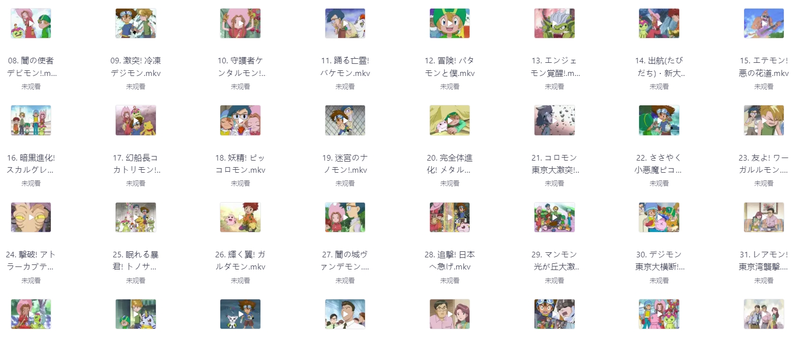 数码宝贝(1999) S01-S08季.1080p.国粤日三语版+剧场版+OVA共10部 栏目:动漫区 作者:nantuziyuan123 时间:2025-12-10 21:23:59    **简介:** **名称:**数码宝贝 デジモンアドベンチャー **导演:**细田守 **编剧:**本乡昭由,西园悟,雅木宏,前川淳 **主演:**藤田淑子,风间勇刀,水谷优子。天神有海 **类型:**动作,动画,惊悚,家庭,奇幻,冒险 **制片地区:**日本 **上映时间:**1999-03-07(日本) **影视语言:**日语 **评分:**9.5 **剧情简介:** 1999年,由于数码世界资料异常增生,导致数码世界和现实世界的连接发生紊乱。地球上相应地出现奇怪的自然现象:东南亚没有下雨,池塘全部干涸;中东却因为连场大雨发生洪水;美国则遇到有史以来最寒冷的冬天。11岁的少年八神太一(藤田淑子配音),和伙伴石田大和(风间勇刀配音)、武之内空(水谷优子配音)、泉光子郎(天神有海配音)、太刀川美美(前田爱配音)、城户丈(菊池正美配音)、高石武(小西寛子配音)一起参加了夏令营,一次意外却被神秘地送到了一个多彩的数码世界。在那里,他们得到了叫做“数码宝贝”的搭档。进入数码世界后,八神太一一行人遇到了凶恶的怪兽贝壳兽,眼看大家都要被抓住的时候,太一的亚古兽忽然进化成为暴龙兽,拯救了他们。进化到底是怎么回事情?数码世界究竟是什么?无数的谜团出现在被召选的小朋友们面前,精彩的冒险就这样开始了…… > [!success] **资源链接** > https://pan.quark.cn/s/2aeeda912816 版权声明:本站不存储任何实质资源,该帖为发布的网盘链接介绍帖。如您认为本站任何介绍帖侵犯了您的合法版权,请联系站长 ( 微信:titanluo87) 进行投诉,我们将在确认本文链接指向的资源存在侵权后,立即删除相关介绍帖子!